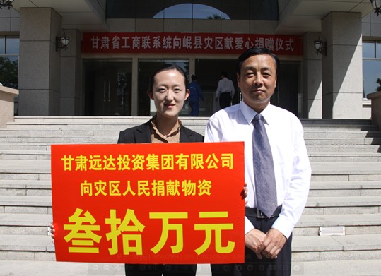 [2012-5-23]扶危濟(jì)困 奉獻(xiàn)社會(huì) [2012-5-23]心系災(zāi)區(qū) 大愛遠(yuǎn)行 [2011-4-10]甘肅遠(yuǎn)達(dá)集團(tuán)向青海玉樹地震災(zāi)區(qū)捐助價(jià)值30萬(wàn)...